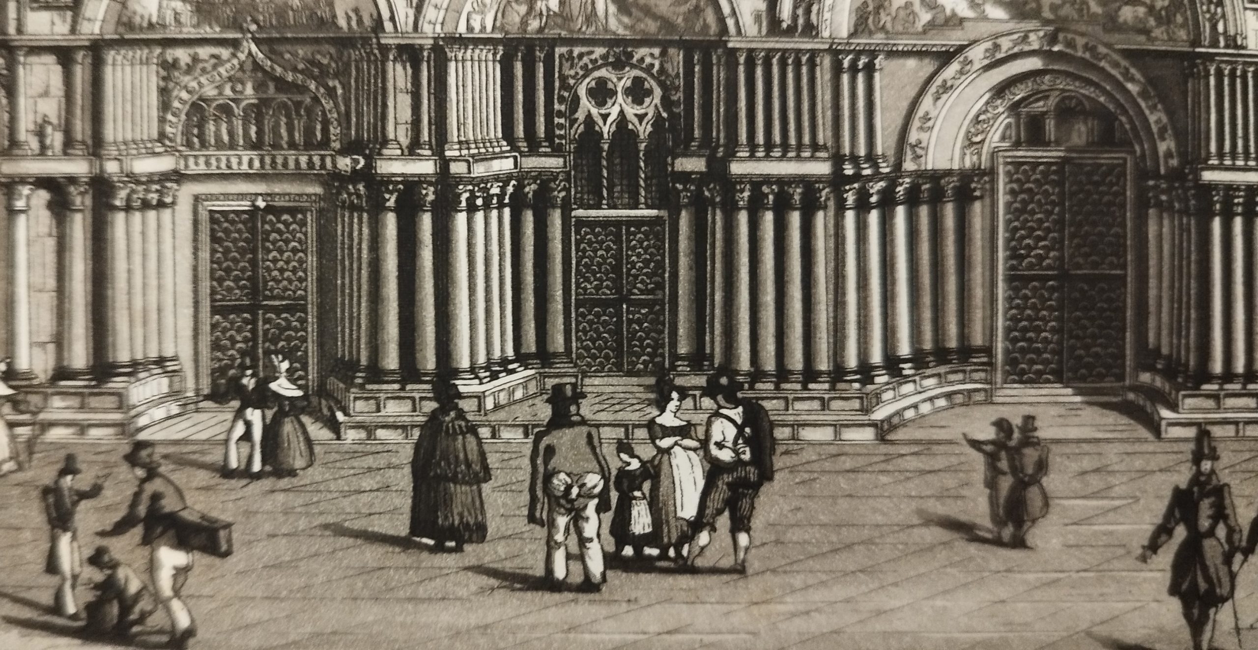 In-folio oblungo (40 x 27 cm) (14) (6) c. (di tav.) al frontespizio interno della Basilica. Testo in italiano e francese. Mezza pergamena con piatti in carta marmorizzata. Qualche fioritura. Quasi invisibile gora ai margini bianchi laterali. Titolo integrale “La R. Basilica di S. Marco esposta in sei tavole. Disegnate ed eseguite all’Acquatinta da Antonio Lazzari. Copiosamente descritta nelle due lingue Italiana e Francese da Giuseppe Piazza dedicata a sua Eminenza Jacopo Monico, Cardinale di S. Chiesa.” Album di sei magnifiche acquatinte di Antonio Lazzari. Riporta Giannantonio Moschini in “Dell’incisione in Venezia”: Antonio Lazzari, figlio di Biagio e di Angela Franchin, nacque in Mestre in giorno diciannovesimo di settembre dell’anno 1798. Giovanissimo fu mandato a Venezia acciochè si aplicasse agli studi che convengono a chi voglia divenire buon architetto ingegnere: se non che la morte del padre il costrinse a porsi in altra carriera che gli procurasse più pronto guadagno. Da giovane ingegno quale egli era veramente, e chiamato da natura a trattare le belle arti, non poteasi avere si facilmente istitutori più valorosi. Mazzani nell’ornato, Selva nell’architettura civile, Davide Rossi nella prospettiva, Matteini negli elementi di figura, Cipriani nell’intaglio, furono i professori che lodavano il Lazzari lodatore di ciascuno di quelli. Incominciò nell’ombreggiare a chiaroscuro all’acquarella e ne riscosse approvazione e vantaggio. Dappoi venne addetto per qualche tempo nell’ufficio dell’ingegnere presso la nostra Congregazione Municipale, e diligente disegnava, pure vigilava i lavori che doveansi condurre. Giunto all’anno ventisettesimo di età volle consacrarsi all’incisione all’acquatinta, il cui metodo vieppiù gli affievolì la salute e gli affrettò la morte che il rapì nel giorno decimo di novembre dell’anno 1834. Caldo, infaticabile non mai ristava dal lavoro, e nelle stesse sue penose agonie voleva occuparsi in quell’arte che a ragione gli era carissima, arte che qui trasuratissima l’obbligò a farsi maestro di sé stesso. Soprattutto gli piaceva prendere gli argomenti della nostra città, e ne abbiamo dugento vedute a carta, di vario formato. Vi si ammira specialmente la superata diffcoltà della degradazione dell’ombre. Ma l’opera donde pareva gli dovesse venire la più diffusa e chiara fama era la Raccolta ch’egli mirava a darci de’ nostri principali templi. Aveva cominciato da quello di San Marco al quale doveano primi tener dietro i templi della Salute, di S. Giorgio Maggiore, del Redentore. Ne aveva dato la chiesa di s. Marco in sei tavole in fol. Traverso, giuntavi una compendiosa descrizione di Giuseppe Piazza. Bell’elogio di essa avea fatto l’intelligente signore Alessandro Zanetti nel Giornale delle Belle Arti e di Tecnologia. Ei le lodava siccome semplicissime ne’ partiti di luce, nette, vigorose, armoniche nell’insieme, degradate con istudiosa accuratezza, diligenti e non fantastiche nelle linee, non capricciose, pazientemente eseguite.In-folio oblong (40 x 27 cm) (14) (6) c. (of plate) to the internal frontispiece of the Basilica. Text in Italian and French. Half parchment with marbled paper plates. Some flowering. Almost invisible gora at the lateral white margins. Album of a few but magnificent aquatints by Antonio Lazzari. Giannantonio Moschini reports in Dell’incisione in Venezia: Antonio Lazzari, son of Biagio and Angela Franchin, was born in Mestre on the nineteenth day of September in the year 1798. Very young he was sent to Venice so that he could apply himself to the studies that are suitable for whoever wants to become a good architect and engineer: if not that the death of his father forced him to take up another career that would bring him more rapid gain. As a young genius as he really was, and called by nature to deal with fine arts, he could not have easily more valiant tutors. Mazzani in the ornamentation, Selva in the civil architecture, Davide Rossi in the perspective, Matteini in the elements of the figure, Cipriani in the intaglio, were the professors who praised Lazzari, the lauder of each of them. chiaroscuro all’acquarella and received approval and advantage. Afterwards he was employed for some time in the office of the engineer at our Congregation Munic ipale, and diligently drew, also supervised the work that had to be carried out. When he reached the twenty-seventh year of age, he wanted to devote himself to etching with aquatint, whose method increasingly weakened his health and hastened his death which he kidnapped on the tenth day of November of the year 1834. Hot, tireless, he never rested from work , and in his own painful agonies he wanted to occupy himself with that art which was rightly so dear to him, an art which here very much obliged him to become a master of himself. Above all, he liked to take up the topics of our city, and we have two hundred views on paper, of various formats. One especially admires the overcome difficulty of the degradation of the shadows. But the work from which he seemed to have the most widespread and clear fame was the Collection which he aimed to give us of our principal temples. He had begun with that of San Marco, to which the temples of the Salute, of San Giorgio Maggiore, of the Redentore were first to follow. He had given the church of s. Marco in six plates in fol. Traverso, there is a summary description by Giuseppe Piazza. The intelligent lord Alessandro Zanetti had praised it in the Giornale delle Belle Arti e di Tecnologia. He praised them as being very simple in the parties of light, clear, vigorous, harmonious on the whole, degraded with studious accuracy, diligent and not fantastic in the lines, not capricious, patiently executed.