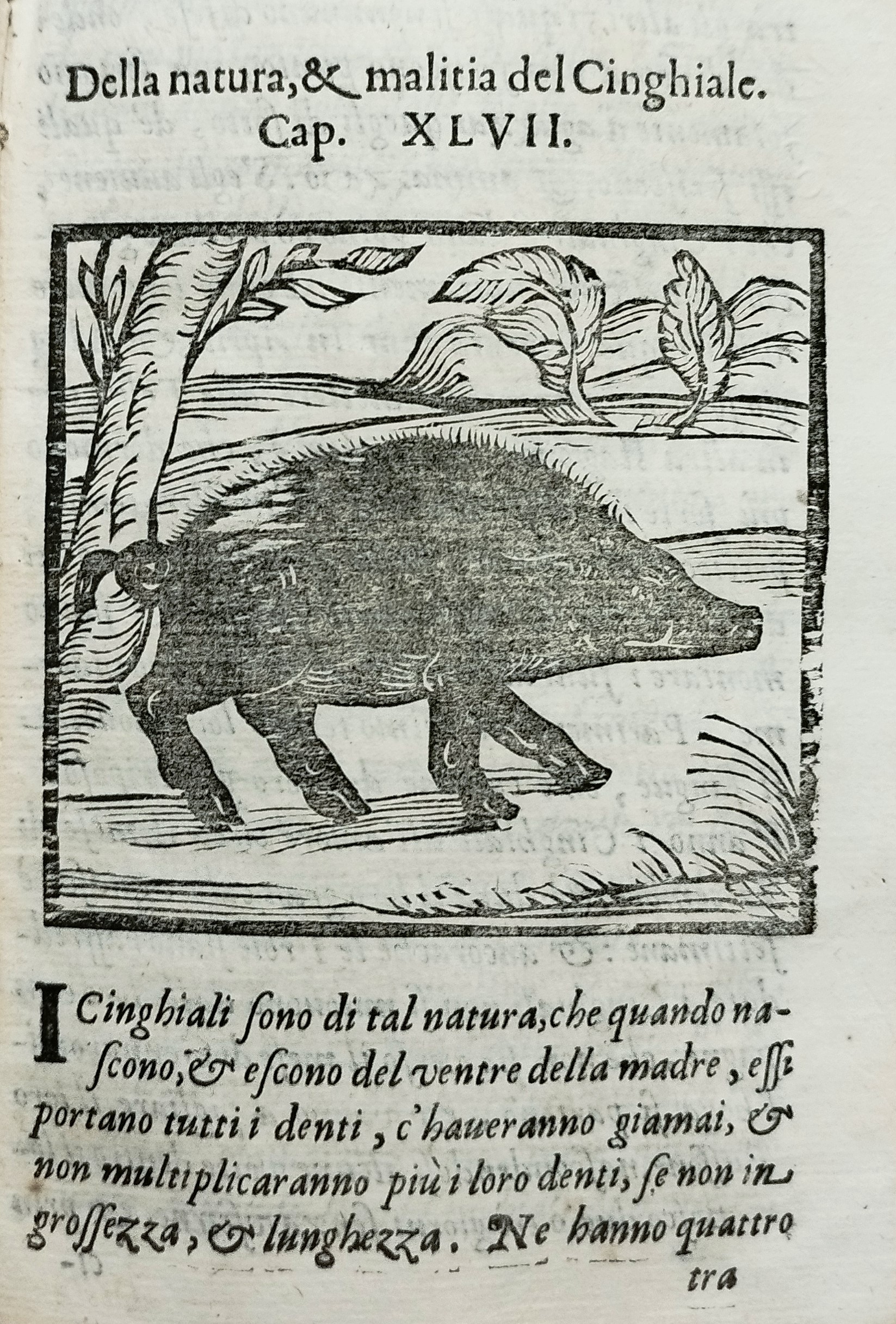 In-8 (15 cm) (8) 338 (6). Stemma xilografato del dedicatario Ercole Visconti, signore di Pagazzano al frontespizio. 40 xilografie nel testo, spesso ripetute.Legatura in piena pergamena settecentesca, sguardie moderne, tagli colorati. Margini piuttosto ridotti. Piccolo foro alla pagine 273 Prima edizione italiana dell’importante trattato sulla caccia col cane di Jacques Du Fouilloux (1521-1580), stampato per la prima volta a Poitiers nel 1560, sebbene la presente traduzione ricalchi la edizione parigina del 1606. Questo assai celebre testo cinquecentesco dedica tutta una prima parte alla descrizione e cura dei cani, per poi rivolgersi alla esamina della caccia al cervo, al cinghiale, alla lepre, alla volpe ed ai tassi; il volume si chiude con alcune ritcette di veterinaria. (EN) In-8 (15 cm) (8) 338 (6). Woodcut coat of arms of the dedicatee Ercole Visconti, lord of Pagazzano on the frontispiece. 40 woodcuts in the text, often repeated. Full eighteenth-century parchment binding, modern endcaps, colored cuts. Rather small margins. First Italian edition of the important treatise on hunting with dogs by Jacques Du Fouilloux (1521-1580), printed for the first time in Poitiers in 1560, although the present translation follows the Parisian edition of 1606. This very famous sixteenth-century text dedicates an entire first part to the description and care of dogs, and then to examine the hunting of deer, wild boar, hare, fox and badgers; the volume ends with some veterinary recipes.
