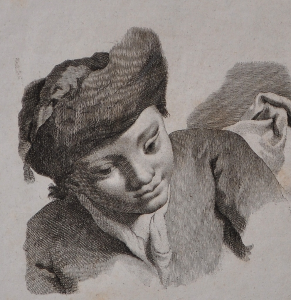 Incisione a bulino su rame; i. 300 mm x 220 mm. Uno dei più bei fogli tratti dal volume “Studi di Pittura già dissegnati da Giambattista Piazzetta, ed ora con l’intagli di Marco Pitteri”