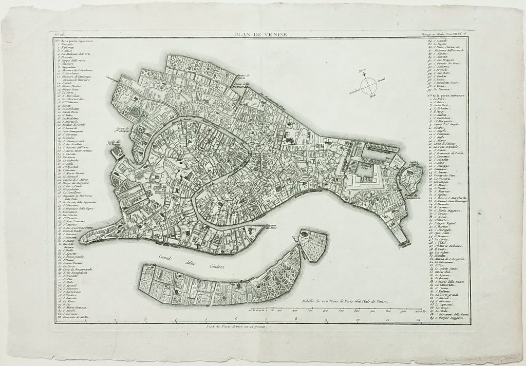 Copper engraving measuring 264 x 382 mm on beautiful thick laid paper. This sheet comes from Joseph Jerome De Lalande’s work ‘Voyage en Italie’. Numerous place names in the two side columns. Uncommon.