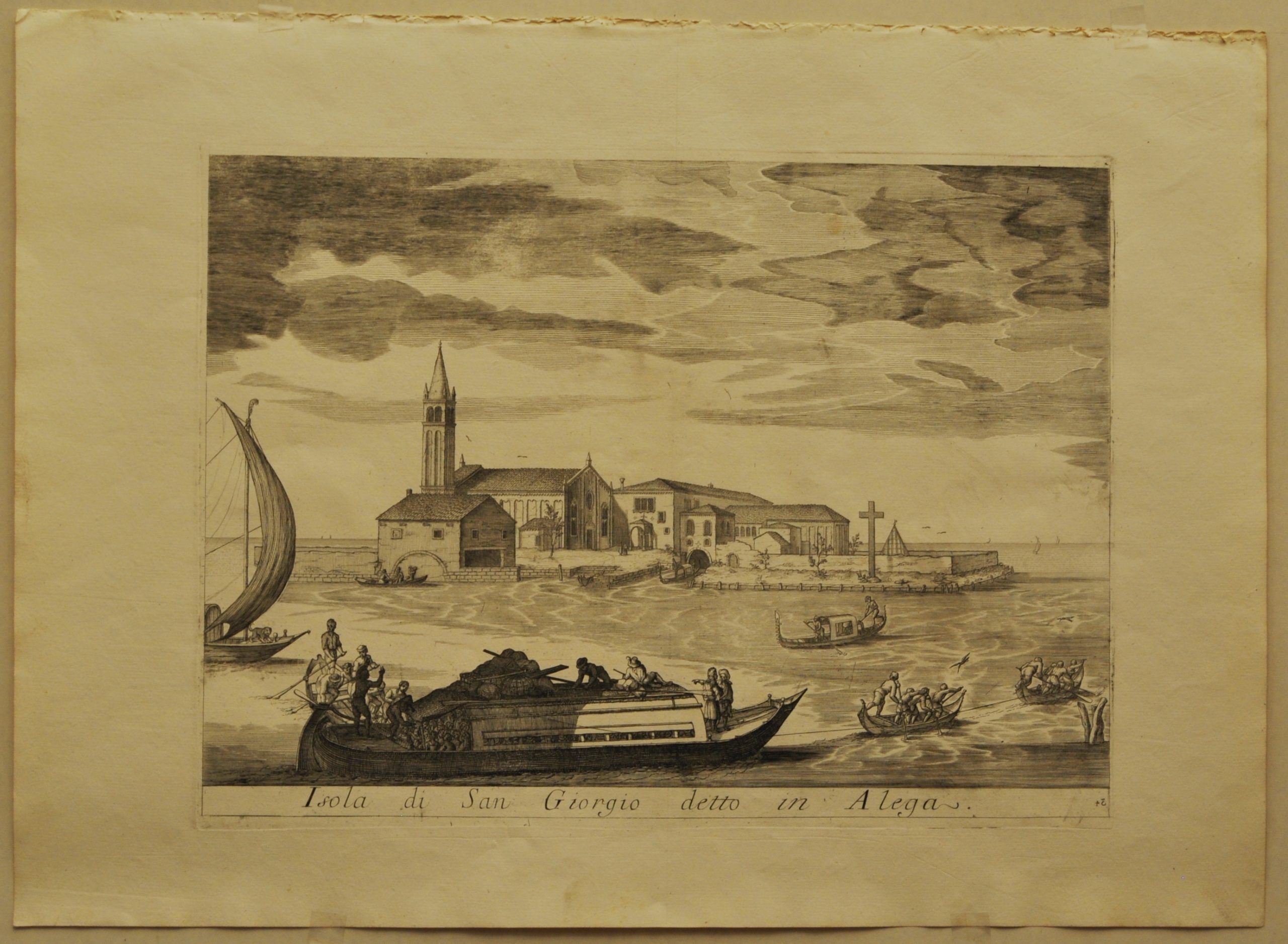 Acquaforte e bulino di mm 467 x 340. Pastosa, spessa, fittamente vergata. Filigrana 2 esse. Stato I/I. Pieni margini . Per il resto foglio senza difetti. “Prospetto delle Fondamente nove con l’aspetto delle Isole di S. Cristoforo et S. Michele et S. Franc.co del Deserto” al centro in basso, “Per Domenico Lovisa in Rialto Venetia” a destra in basso. Proveniente da: “Il Gran Teatro delle Pitture e Prospettive di Venezia, in due tomi diviso”. Il foglio, che rappresenta una delle Isole ancora esistenti, sebbene molto diverse, della Laguna, fa parte della grande opera di Domenico Lovisa, pubblicata a Venezia nel 1720. La suite si componeva di due volumi: il primo, relativo a vedute veneziane e lagunari, venne disegnato da Giuseppe Valeriani, mentre è ignoto chi ne fu l’incisore; il secondo, relativo a pitture di celebri artisti veneziani, venne realizzato da Andrea Zucchi. L’album di vedute, sebbene non eccelso da un punto di vista stilistico, rappresenta la più ampia documentazione sulla vita privata a Venezia nel 1700: la scena è sempre ricolma di azione, spesso anche spiritosa, tutta tesa ad una rappresentazione cronachistica, più che architettonica, di Venezia. Cicogna 4541, Succi 230