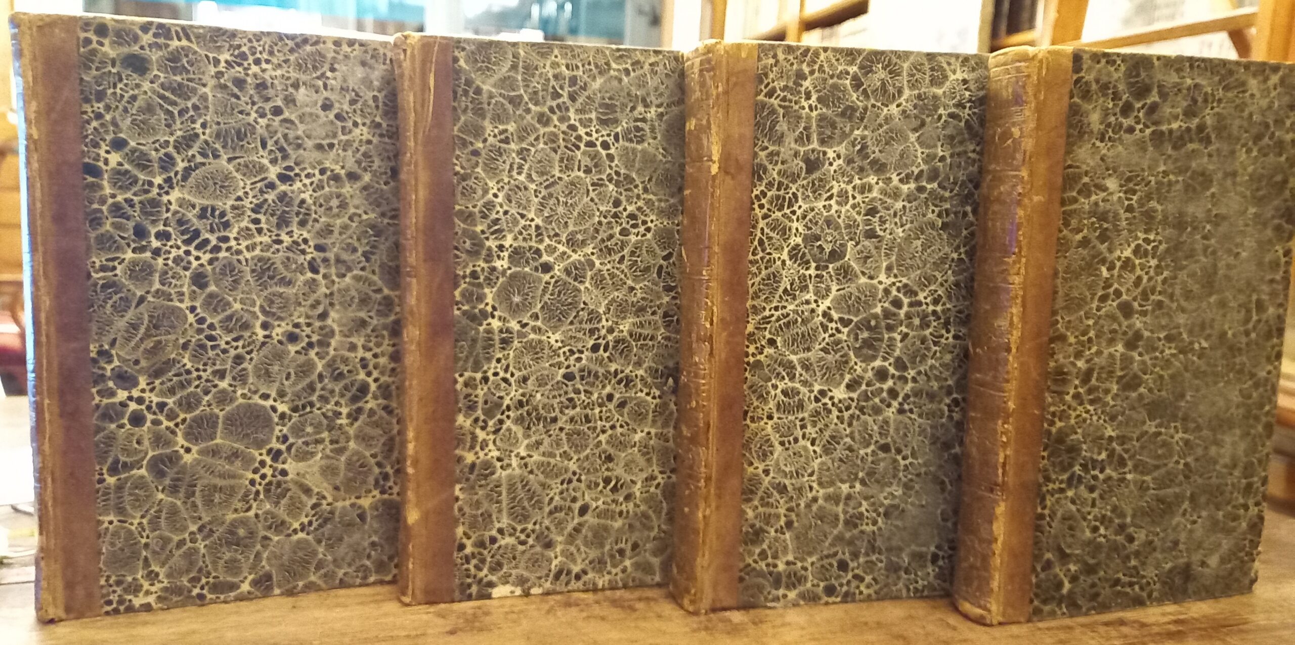 In-8 (20,5 cm) 4 voll CXIX (1) 404 (8) c. 186 (3); (4) 464; (4) 444; VIII 471.Occhietto ai primi tre volumi: Spirito delle leggi del signor di Montesquieu. Il volume quattro Contiene ciascuno con proprio occhietto: Difesa dello spirito delle leggi; Ringraziamento sincero ad un uomo caritatevole. Attribuito a M. de Voltaire; Lisimaco. Legatura in mezza pelle con piatti cartonati rivestiti di carta marmorizzata. L’impaginazione delle pagine del primo volume con numeri romani è caotica, ma completa come tutta l’opera.In-8 (20.5 cm) 4 vols CXIX (1) 404 (8) c. 186 (3); (4) 464; (4) 444; VIII 471. Short text to the first three volumes: Spirit of the laws of M. de Montesquieu. Volume four Contains each with its own half-title: Defense of the spirit of the laws; Sincere thanks to a charitable man. Attributed to M. de Voltaire; Lysimachus. Half leather binding with cardboard plates covered with marbled paper. The layout of the pages of the first volume with Roman numerals is chaotic, but complete like the whole work.